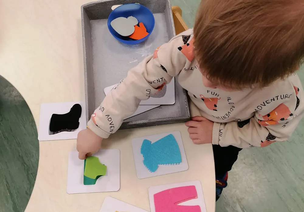 L'ambiente: il compito dell'ambiente è quello di offrire strumenti che i bambini hanno la libertà di utilizzare per cercare risposte ai loro interessi esplorativi. Una cura particolare è posta nella scelta delle attività da proporre ai bambini, tutte ben organizzate e poste in zone ben definite. Gli oggetti proposti devono rispondere a un interesse del bambino e facilitare la concentrazione dell'esercizio individuale.